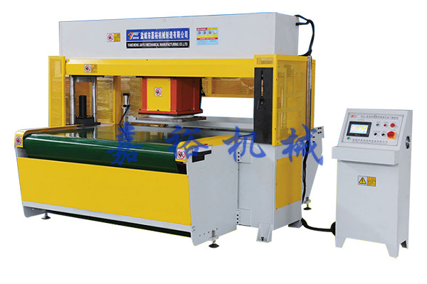 裁断头下压时在接触裁刀10mm前自动缓速,两级加压,上工作板下压至裁刀时转柔性切断,使裁断多层材料时,较上层与较下层没有尺寸误差。